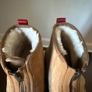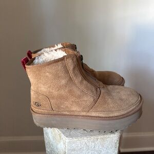 UGG® updates a classic chukka look with exposed zips and plush sheepskin in the Neumel platform booties. Chestnut Suede