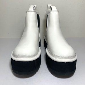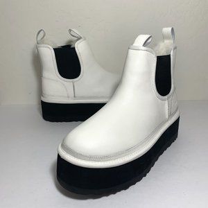 UGG Neumel Platform Chelsea Booties Leather Shearling Boots White Size 10 NEW