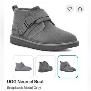 UGG Neumel Boot Snapback Metal Grey boots with a sleek buckle. Ideal for everyday style.