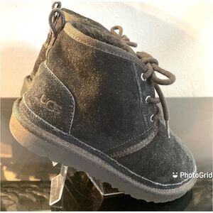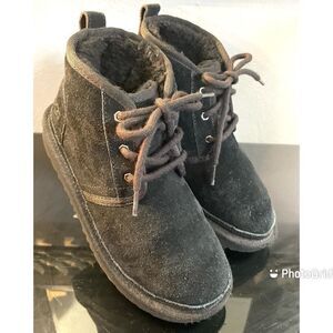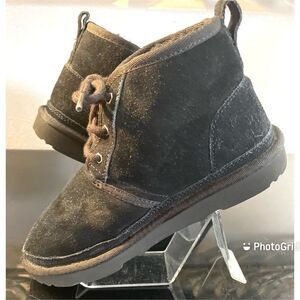 UGG Neumel II 1017320K Black Suede Ankle Boots Youth Size 3. Front Laces Sheepskin Insoles Rubber Outsole. Very Good Preowned Condition. No Box!