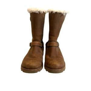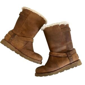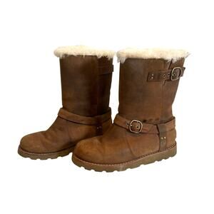 UGG Noira Waterproof Leather Sheepskin Boots Brown Women's 6