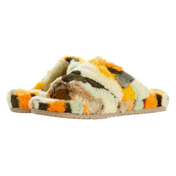 UGG OLIVE CALI COLLAGE FLUFF YOU SLIPPERS, Size 8