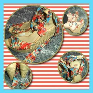 UGG OPEN TOE SANDALS ANKLE TIE WEDGES STRAPPY WRAP LUCIANNA HEELS~WOMENS SIZE 8