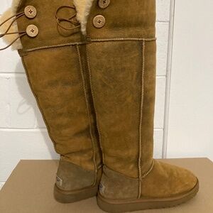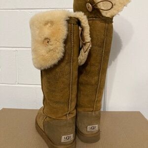 UGG OVER THE KNEE BAILEY BOTTON BOMBER JACKET BOOTS CHESTNUT COLOR SIZE 9