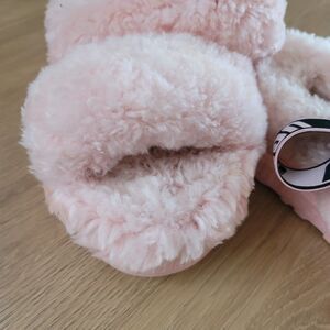 The UGG Soft Oh Fluffita Slide Platform Slippers in Pink are a stylish and comfortable choice for women in size 8. These slip-on slippers feature a mid heel height, cushioned comfort, and a shearling fabric type for added warmth. With accents like fur trim and a logo strap, these slides are perfect for casual or travel occasions year-round. The fluffy character and pink color make them a fun and cozy addition to any wardrobe. Made by UGG, these slippers are designed for ultimate comfort with a sheepskin lining and rubber outsole.