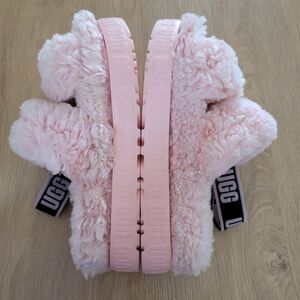 UGG Oh Fluffita Platform Slippers Women 8 Pink Scallop Curly Sheepskin Sandal
