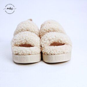 UGG Oh Fluffita Sheepskin Platform Slipper Slide Sandals Ivory Women US 8 EU 39
