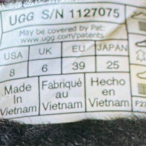 These UGG Fluff You slippers feature a striking zebra print in neon green and black. The cozy black fur lining offers warmth and comfort for daily relaxation. The rubber sole ensures durability and grip. Made in Vietnam, these slippers are a stylish addition to your loungewear collection.