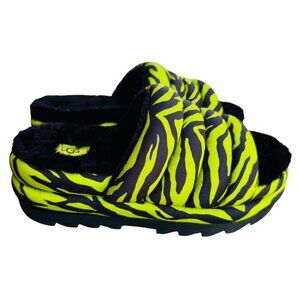 UGG Oh Yeah Slide Shoes Womens Size 8 Fuzzy Sandals Slippers Zebra Neon Green