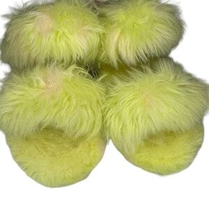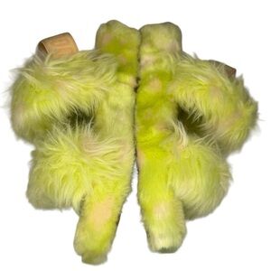 UGG | Oh Yeah Spots faux fur yellow green fuzzy double strap slippers size 6