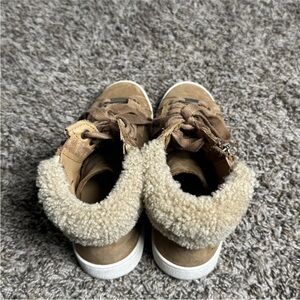 UGG Olive Shoes Womens 7 Brown Tan Nubuck Shearling High Top Zip Lace Up Sneaker