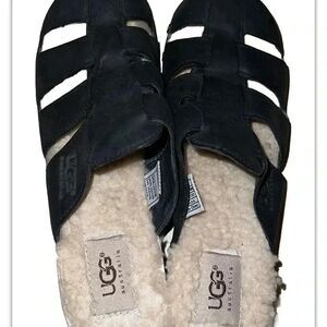 UGG Ore Wooden Leather Fisherman Black Clog Mule Sandals Size 6