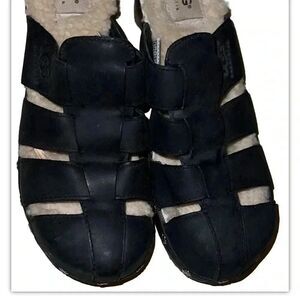 UGG Ore Wooden Leather Fisherman Black Clog Mule Sandals Size 6