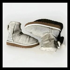 UGG PLATINUM GOLD SPARKLE FUR BOW SUEDE SHEEPWOOL BOOTS SIZE US 7/ EUR 38