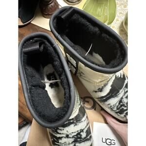 UGG PLUSH Ankle Faux Fur Mini Marble Clear Coated Booties Waterproof 7