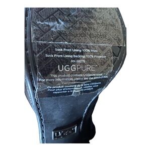 Gently Worn UGG PURE Black Leather Ankle Boots Women's US 9 100% Wool Sock Lining Heel. These are in good condition. No rips or tears. **Condition Notes (Gently Used): In good pre-owned condition. Soles are undamaged. Signs of wear include minor scuffs, scratches, and creases typical of leather.