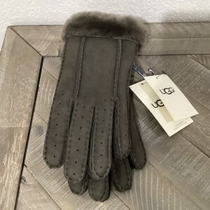 UGG Perforated Genuine Shearling Suede Gloves, size S
