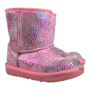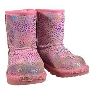 UGG Pink Sequin Classic Short Sparkle Glitter Shearling Lined Winter Size 12