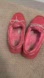 The bow on the left moccasin is messed up and re-tied. These are in used condition. Tread is good but examine the pictures for discoloration and wear. There is discoloration on the suede outside, and excess wear pictured. Please look at pictures for the condition of the item. 🙂