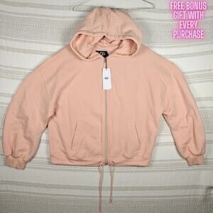 UGG Pink Zip Up Hoodie Half Moon Sleeves with Pockets Size XL NWT