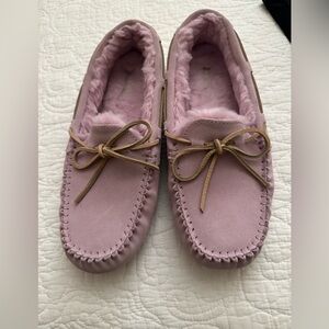 UGG Pink/Lavender soft suede with shearling lining.