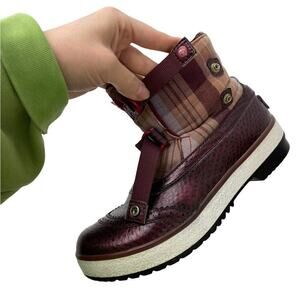 UGG Plaid Marrais Double Buckle Waterproof Lined Leather Upper Boots Womens 7 Deep Maroon/Burgundy Boots.