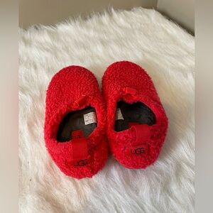 UGG Plushy Cherry Red Fleece Slippers size 6