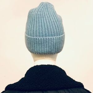 - UGG Powder Blue Chunky Rib Knit Faux-Fur-Lined Beanie