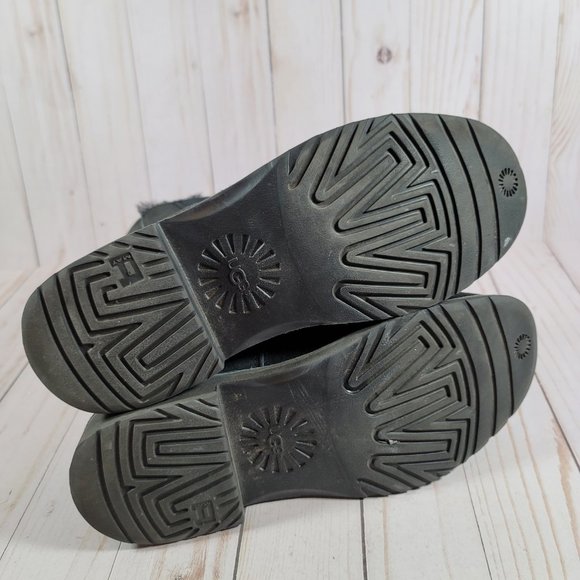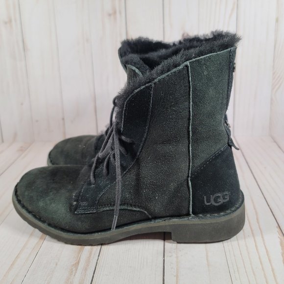 UGG QUINCY Twinface Sheepskin Lace Up Booties BLACK