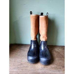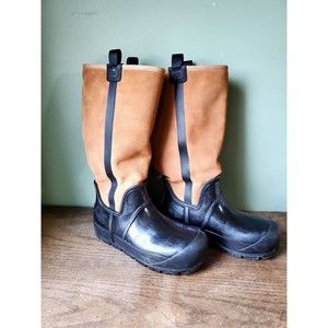 These boots are in very good, pre-owned condition. There are faint marking/scuffs on black rubber portion of boots due to use. Please refer to provided pictures.
