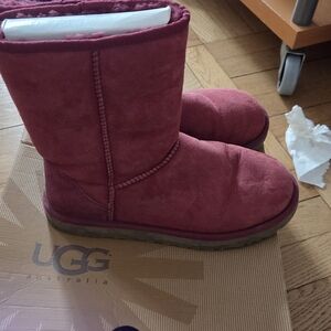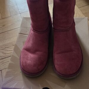 Cozy UGG boots in a rich raspberry hue. Ideal for warmth and style.