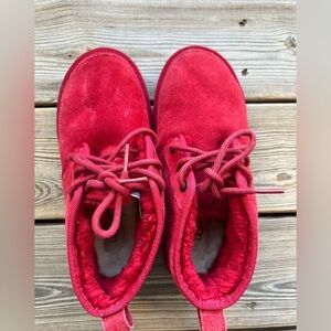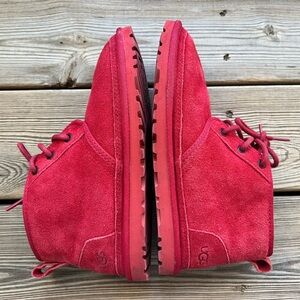UGG Red Chukka Neumel Boots Red Suede Shearling Fur Lined Women’s Sz 6
