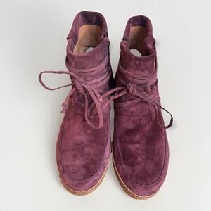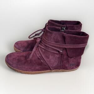UGG Reid Wine Suede Moccasin Boots Women 10 Leather Sheepskin 1019129 NWOT