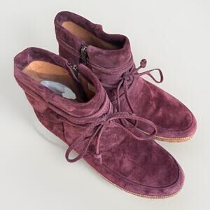 The UGG Reid Wine Suede Moccasin Boots in size 10 for women are stylish and comfortable ankle boots crafted from leather suede with sheepskin lining. These red boots feature a round toe, zip closure, and a flat heel suitable for casual, formal, business, and travel occasions in the winter, fall, and spring seasons. With a rubber outsole and leather insole, these booties are perfect for outdoor activities and offer a hippie and comfort theme to your outfit. Made by UGG, these boots are a versatile and fashionable addition to any wardrobe.