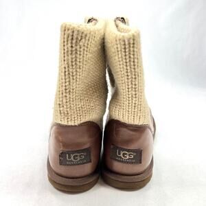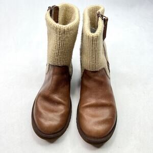 UGG Rosalie brown leather and cream knit/sweater upper boots with side zip closure. Some wear and spots to the leather most notable on the right boot (see photos for condition). Overall still in good wearable condition. Size 7 true to size.