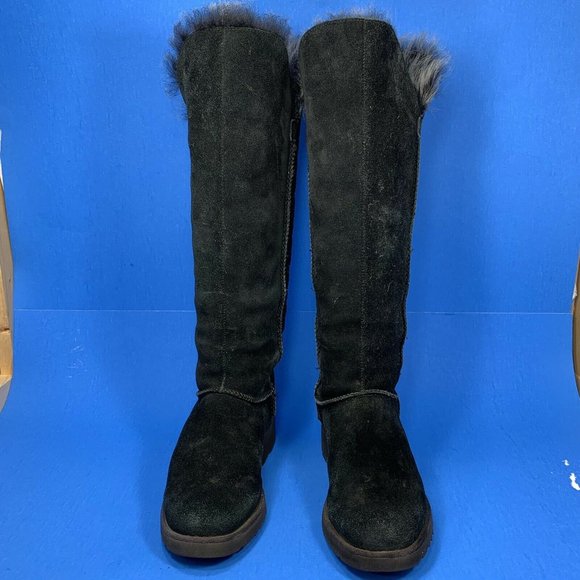 UGG Rosalind Toscano Fur Lined Boots Womens Size 7 Black Suede 17 Inch