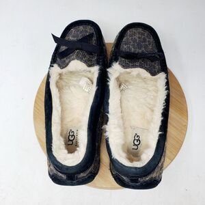 UGG Rylee Slipper Womens 8 Black Metallic Leopard Shearling Loafer Moc Toe Shoe