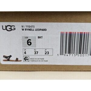 UGG Rynell Leopard Flat Sandals Womens 6M Black Leopard Ankle Strap Shoes NWB
