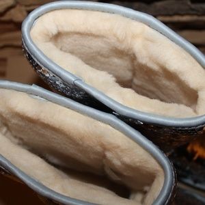 Shimmering sequins add glamorous appeal to a favorite boot lined with plush UGGpure™. UGGpure is a textile made entirely from wool but shaped to feel and wear like genuine shearling. These have sequin that flip to a pink metallic color.