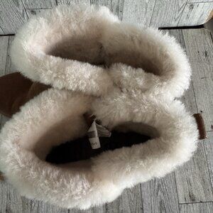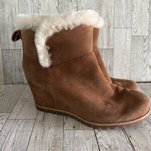 UGG SEYLINE Shearling Suede Pull-On Chestnut Brown Wedge Bootie Womens Size 7.5
