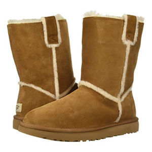 UGG SPILL SEAM SUEDE SHEARLING BOOTS CHESTNUT