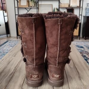 UGG TALL BUTTON SUEDE BOOTS IN BROWN SIZE WOMANS 7. COZY SHEEPSKIN LINING, PRE-OWNED BUT STILL LOTS OF LIFE LEFT TO THEM.