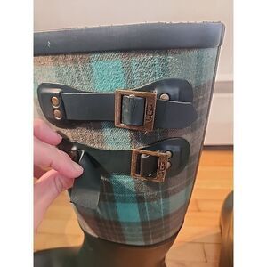 UGG Sabine Tall Women's Green Waterproof Rain Boots Plaid Shoes 6