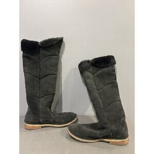 UGG Samantha Tall Knee Boots Black Suede Leather Shearling Womens 8 1008706 Pull