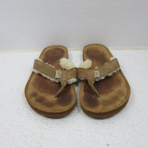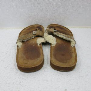 UGG Sandals Australia Sheerling Inner Lining Slide 7, Take a look at this pair of UGG Australia Sandals, just Brushed for Listing, ready to wear. All Sheerling Inner lining with Thick Nubuck Leather Uppers, and a Super Thick Rubber Sole for all day comfort. Very mild wear on this pair, heavy darkening of the insoles, a great pair just the same, you are sure to be pleased. Don't let them get away, a great value,