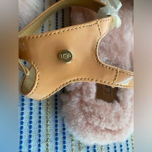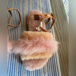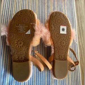 UGG Sandals Fuzz Fur Womans Size US 7 Pink Peach Buckle Straps NEW