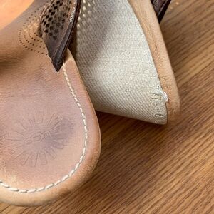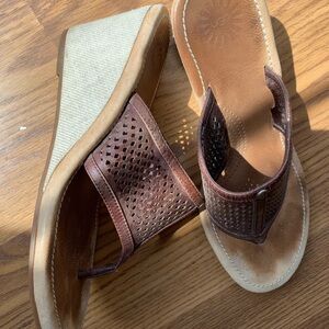 UGG Sandel Wedge Brown Leather Slip On Women Shoes Size 8.5 Summer Footwear some wear but overall good condition