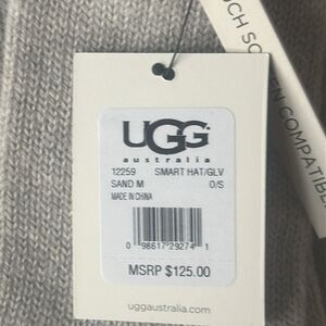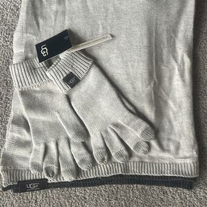 Stylish gray scarf and gloves set by UGG. Perfect for cold weather.