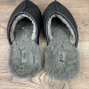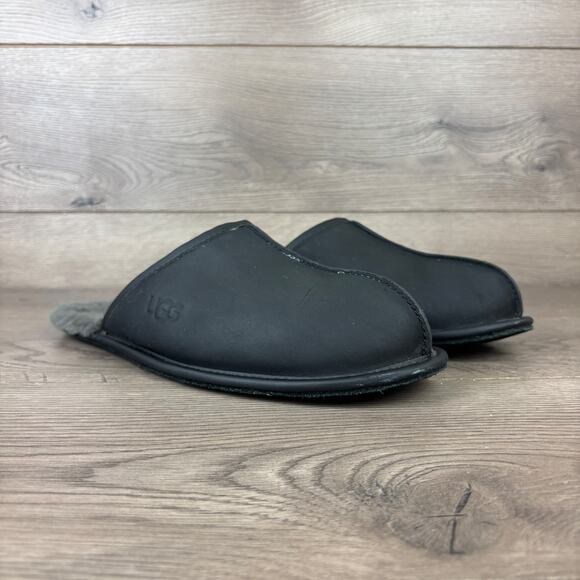 UGG Scuff Shearling Lined Slippers Men's Black Suede Leather - No Size Tag