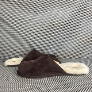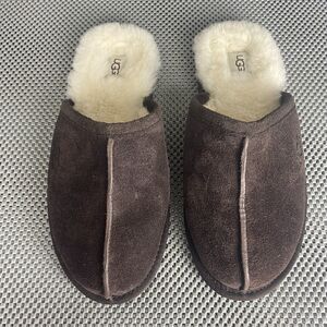 UGG Scuff Slippers Mens Size 11 Brown Leather Sheepskin Shearling Slide On
